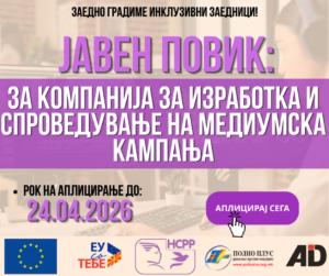 Националниот совет за родова рамноправност објавува јавен повик за фирма за изработка на и спроведување на медиумска кампања за инклузивна еднаквост, наменет за локални граѓански организации во Република Северна Македонија со искуство во видео продукција, графички дизајн и социјални медиуми.